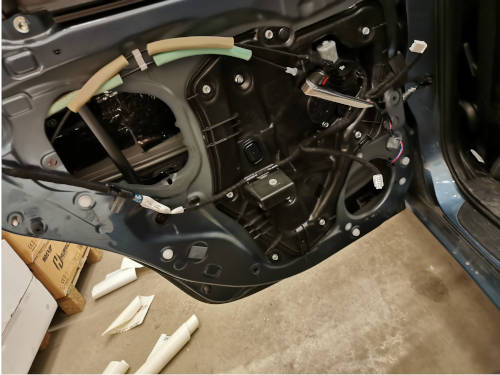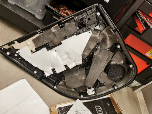 Takaovien vaimennusTakaovien vaimennus ja purku. Takaovien Välipeltiä ei tarvitse purkaa Samalla lailla kuin etuovissa että ovet saa vaimennettua mutta kaiuttimen asennus menee hyvin pitkälti salalla lailla kuin etuovissa. |