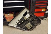 |   Etuovet ennen purkuaOvien purkamiseen suositellaan käytettävän tähän tarkoitettuja muovisia irroitustyökaluja jotta ovipahvit saadaan ehjänä irti. |   Etuovi purettunaOvien purettua nähdään, että autossa ei ole vakiona ovissa vaimennuksia lainkaan. |