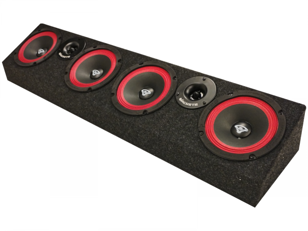 Huom. Kuvan kaiuttimet (4 x 6.5" midbassot ja 2 x 4" diskantit) on valmiiksi koteloitu raggarplankaan.