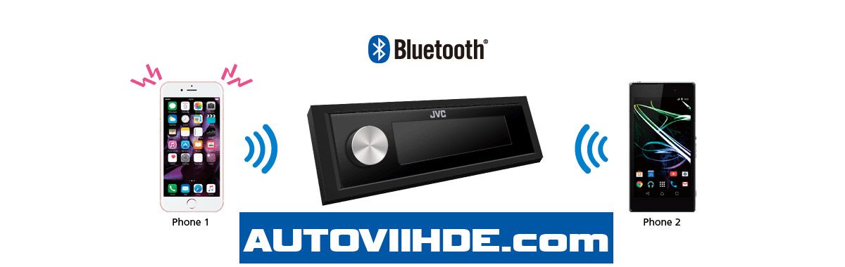 Yhdistä kaksi puhelinta kerrallaan soittimeenVoit yhdistää tähän soittimeen kaksi puhelinta langattomasti käyttäen Bluetooth paritusta. Voit vastaanottaa puheluita kummasta tahansa puhelimesta suoraan soittimen painikkeesta.